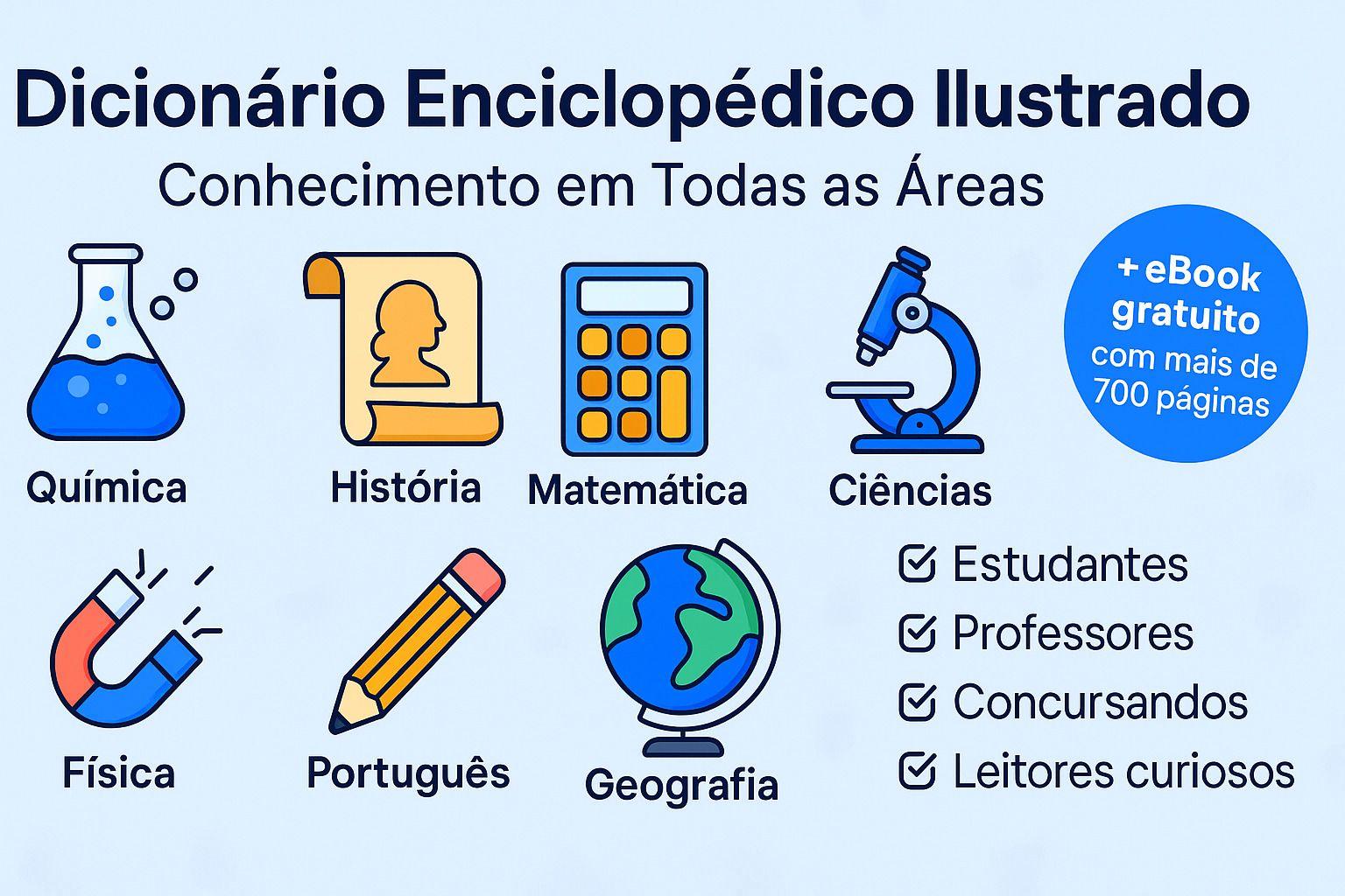 No Dicionário Enciclopédico Ilustrado, você encontra conteúdo completo de Matemática, Português, Ciências, Física, História e Geografia — tudo em um só lugar. Aprofunde-se em álgebra e geometria, domine gramática e redação, descubra fenômenos naturais, entenda as leis da física, viaje por civilizações antigas e explore mapas e regiões do mundo. Material pensado para estudantes, professores e entusiastas que buscam aprendizado de qualidade.